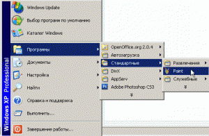 - Открыть графический редактор Paint можно по следующему пути «Пуск» — «Программы» — «Стандартные» — «Paint», как показано на скриншоте ниже: