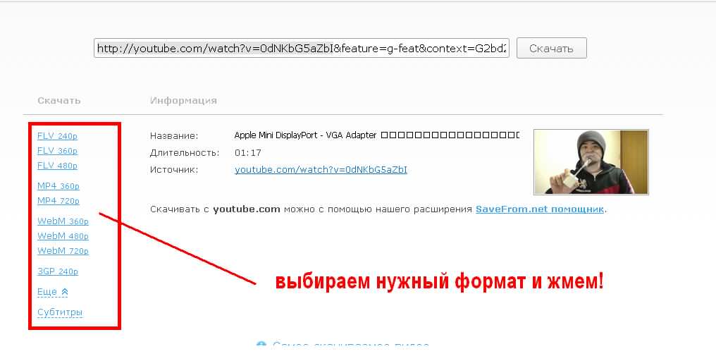 Ссылка должна выглядеть так: www.ssyoutube.com/watch?v=u-4If0vsqfs далее нажмите «Enter». У увидите такую картину: