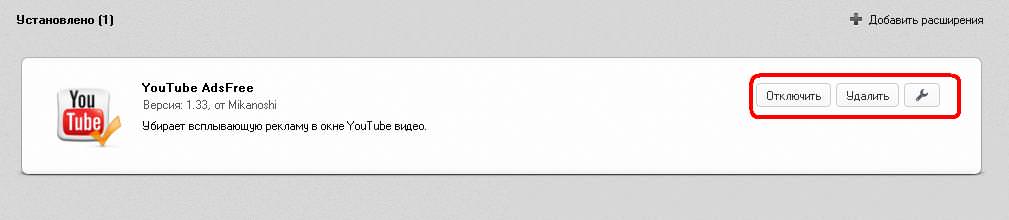 После установки YouTube AdsFree, вы можете зайти в панель управления расширениями Opera. Перейдя по: «Расширения» — «Управление расширениями»